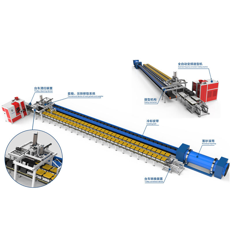 5.Fully automatic molding production line is a mechanical unit which contains different casting process(including molding,pouring,cooling,etc.) in foundry workshop to form production line.